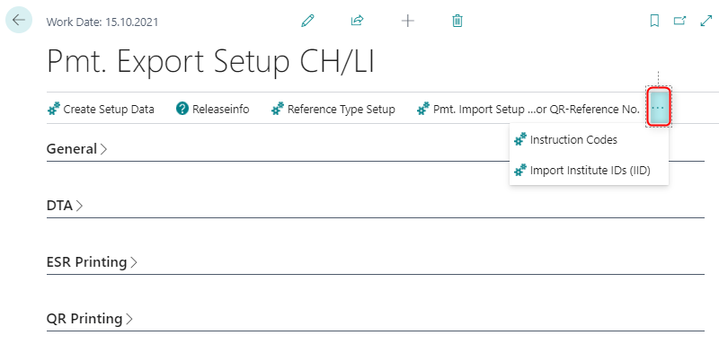 You will find additional functionalities in the Pmt. Export Setup CH/LI for additional functionalities: