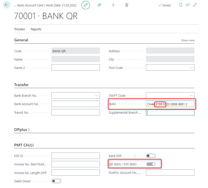On the OPplus bank account card, you can enter a different QR-IBAN in the field QR-IBAN. During the input, it will be checked if it is a correct QR-IBAN. In the request page for report 5157944 CH Print QR you have the choice of a bank account, if a bank account is selected, either the IBAN field must be filled or the QR-IBAN field. If you do not select a different ordering bank account, the data from the Zlg. Export facility CH/LI will be used.