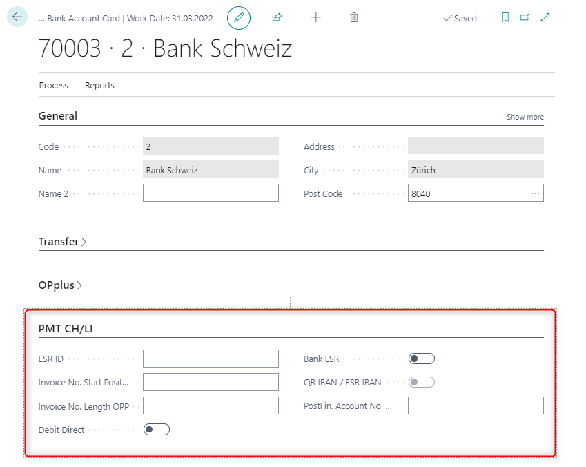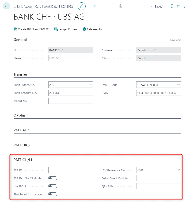 Especially for the Payment Export CH/LI module, two additional fields are available in PMT CH/LI: