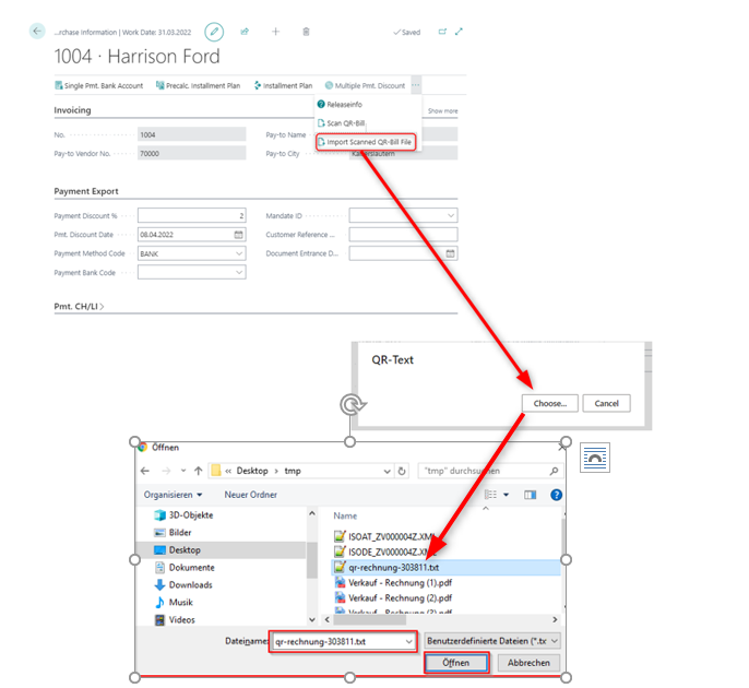 Via "Import Scanned QR Invoice File", QR Code raw data that is available as a *.txt file can be imported.