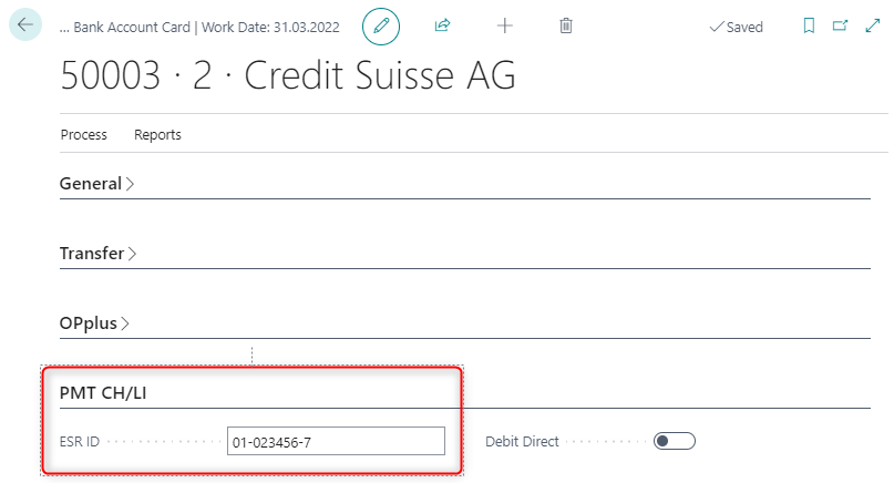 | ESR Member No. CHF | Enter your ISR participant number for CHF here, this participant number will be printed on the ISR payment slip. |
