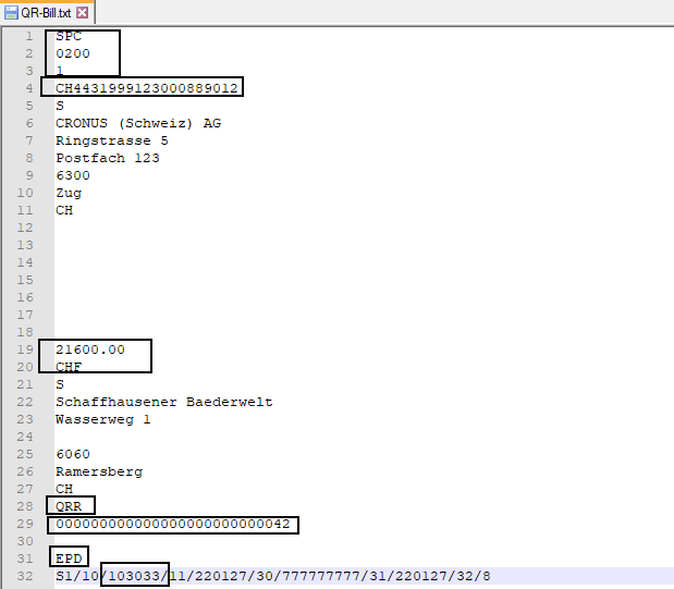 The value "QRR" indicates that the following line is a QR reference. Only QR references can be processed!