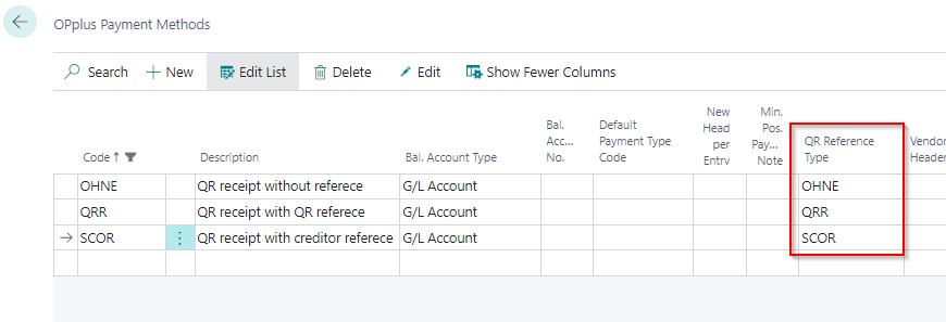 For all payment methods in which no QR reference type is specified, the default reference type from the Pmt. Export CH Setup is used.